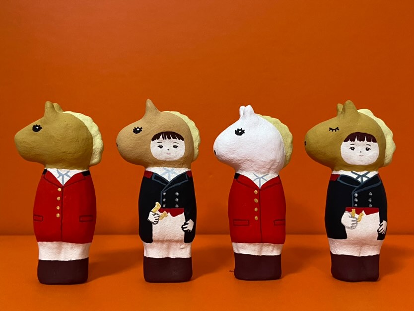 昔々から存在する世界中の郷土人形や日本の郷土玩具への尊敬の気持ちを込めて、石粉粘土とアクリル絵具で手描き手捻りの「みにみつこちゃん人形」と名づけた身長約6センチ〜8センチの小さな人形を制作しています。降って湧くイメージをカタチにしているので、その時どんな人形たちと出会えるか、作者自身も楽しみながら活動しています。